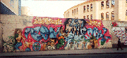 1993. Left two characters by Fase2, Revolucion Latina crew. "COEIII" Coe 3, TUF crew. Right side: "SUSO33" by Susa.33, SSB crew. "DEL" and character (top) by Loco13, Crazy Art crew. Skull by Tom Rock, Crazy Art crew