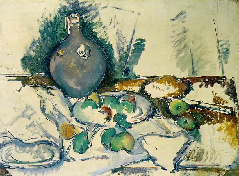 Paul Cézanne, one of the creators of modern art, was called the ``solidifier of Impressionism''. And indeed he does not draw his picture before painting it: instead, he creates space and depth of perspective by means of planes of color, which are freely associated and at the same time contrasted and compared. The facets which are thus produced create not just one but many perspectives, and in this way volume comes once again to dominate the composition, no longer a product of the line but rather of the color itself. His still-lifes, in their simplicity and delicate tonal harmony, are a typical work and thus ideal for an understanding of Cézanne's art.